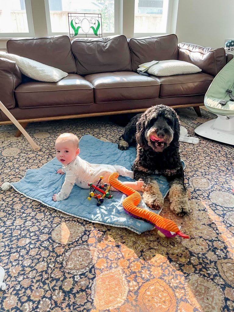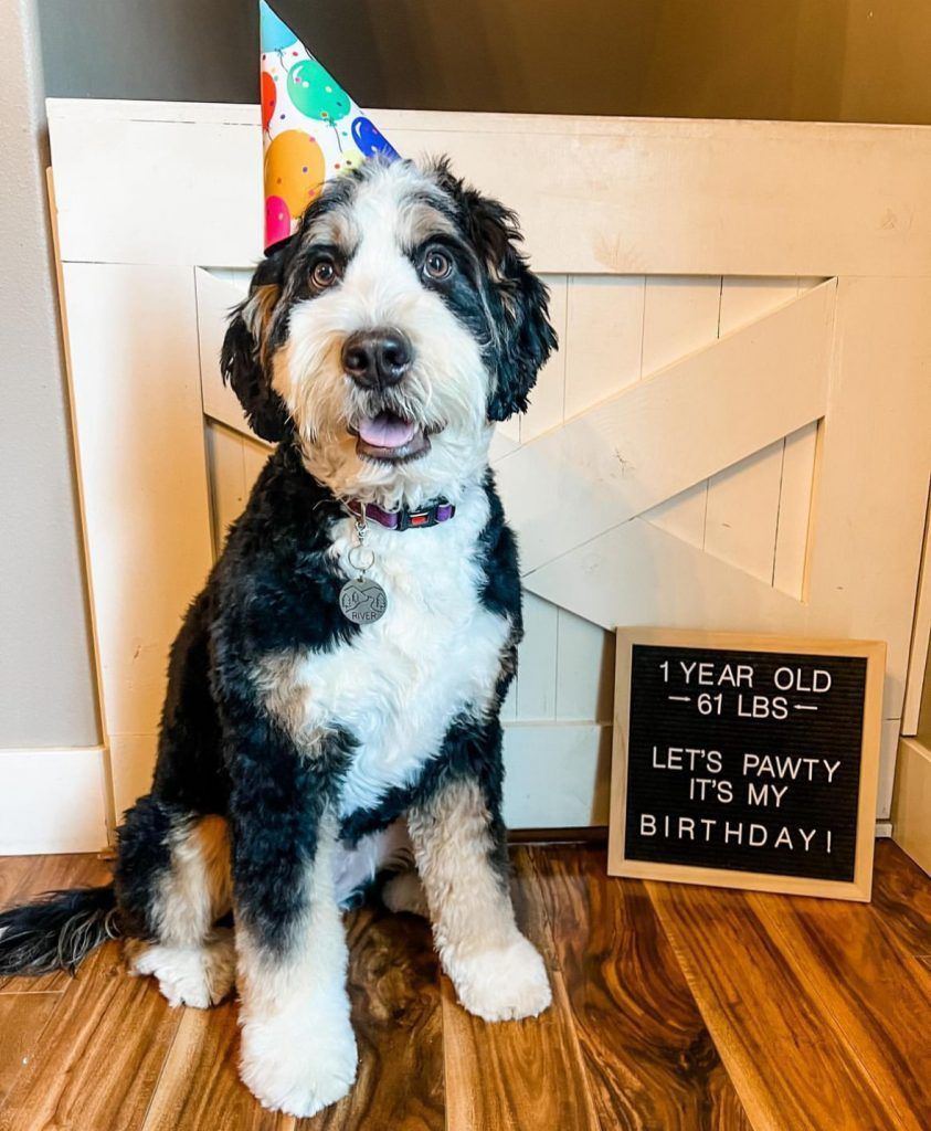 “Fitzgerald “Fitz” came to us as a happy accident! We overheard someone at Beehive Basin talking about their Berner and said the Instagram was so cute – who doesn’t love a dog Instagram?? We started following and sure enough, you had posted about this guy who was still looking for his family. Fitz has been the goofiest dog I’ve ever encountered- he’s playful, cuddly, and loves his people. Fitz is very particular about the people he interacts with, but he loves every dog he meets. He’s so energetic, but also loves to lounge and be sweet. He’s been the best with our son, Eli, and just follows us around everywhere! The best addition to our family 🐾” Angela K.